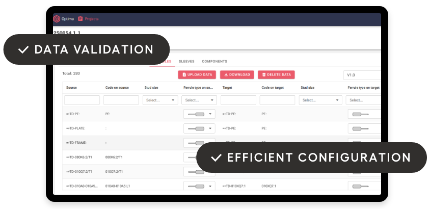 Met het Optima-platform en de machines Testudo en Castellum vertaal je EPLAN-data rechtstreeks naar de werkvloer. Zo digitaliseer én automatiseer je de draadconfectie in één geïntegreerde stroom.