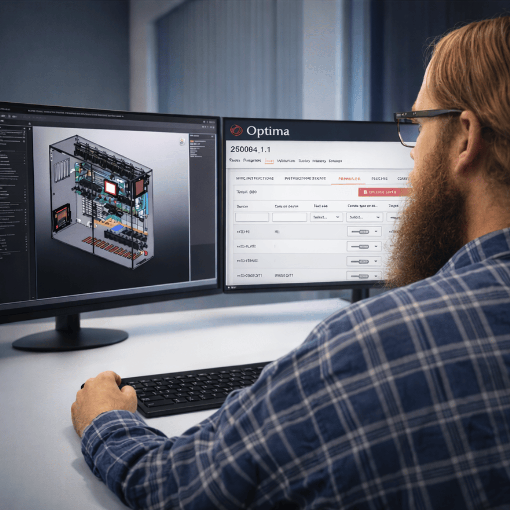 Met het Optima-platform en de machines Testudo en Castellum zet je EPLAN-data één-op-één om naar de werkvloer. Je digitaliseert én automatiseert de draadconfectie volledig.